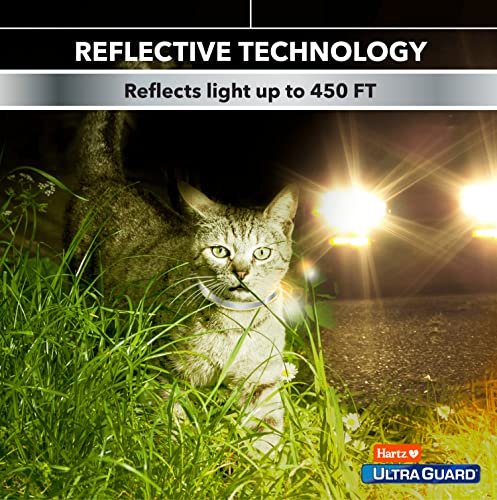 Details: Tell pesky parasites to ‘bug off’ with the Hartz UltraGuard Plus Reflective Flea & Tick Collar for Cats and Kittens. This parasite pummeling collar kills and repels both fleas and ticks for 7 months and also exterminates and prevents flea eggs from hatching for over half the year - stopping the flea life cycle and inhibiting reinfestation. The water resistant design remains effective even after getting caught in the rain. Additionally, the Reflect-X Shield reflects direct light for up to 450 feet for an added dimension of nighttime safety. Also features a breakaway safety release. For continuous flea and tick protection from head to tail, replace the collar every 7 months. For use on kittens 12 weeks of age and older. Directions: Remove collar from package, unroll and stretch to activate insecticide generator. Do not use on kittens under 12 weeks of age. Do not unroll collar until ready to use. Place the collar around the cat’s neck, adjust for proper fit and buckle in place. The collar must be worn loosely to allow for growth of the cat and to permit the collar to move about the neck. Generally, a properly fitted collar is one that, when fastened, will snugly slide over the cat’s head. Leave 2 or 3 inches on the collar for extra adjustment and cut off and dispose of the extra length. Consult a veterinarian before using this product on debilitated, aged or medicated pets. Sensitivity may occur after using any pesticide product for pets. Some animals may become irritated by the collar if it is applied too tightly. If this occurs, loosen the collar. If irritation continues, remove the collar and bathe your cat with mild soap and rinse with large amount of water. If signs continue, consult a veterinarian immediately. Do not use this product on cats simultaneously or within 30 days before or after treatment of other flea and tick products. However, flea and tick collars may be replaced immediately.