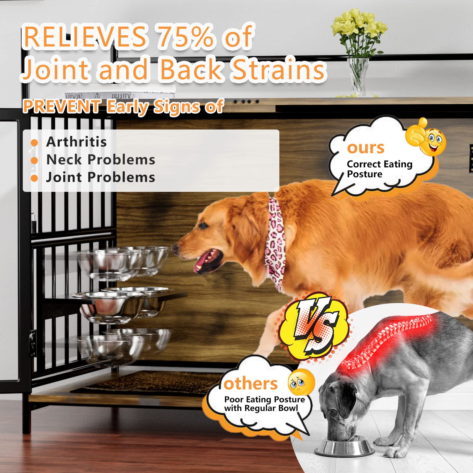 Adjustable Raised Feeder: Keep mealtime tidy and comfortable with the adjustable raised feeder included with this crate. The raised design promotes better digestion and reduces strain on your dog's neck and joints, while the two stainless steel bowls provide a hygienic and convenient feeding solution.