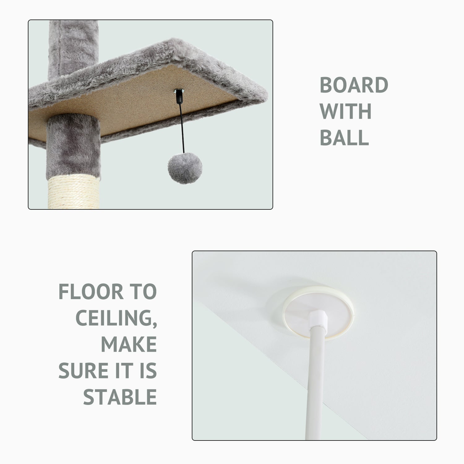 - Cat's activity center: There are 9 scratching posts in different heights that help cats encourage positive scratching behavior and meet different scratching preferences. The corrugated sisal ramp and the dangling sisal rope above the ramp hole give cats another fun place to stretch and scratch.