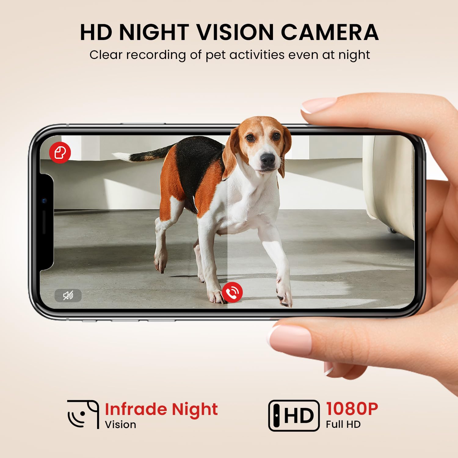 - 1080P HD Camera (with night vision) lets you see, record, and talk to your pet in real time.