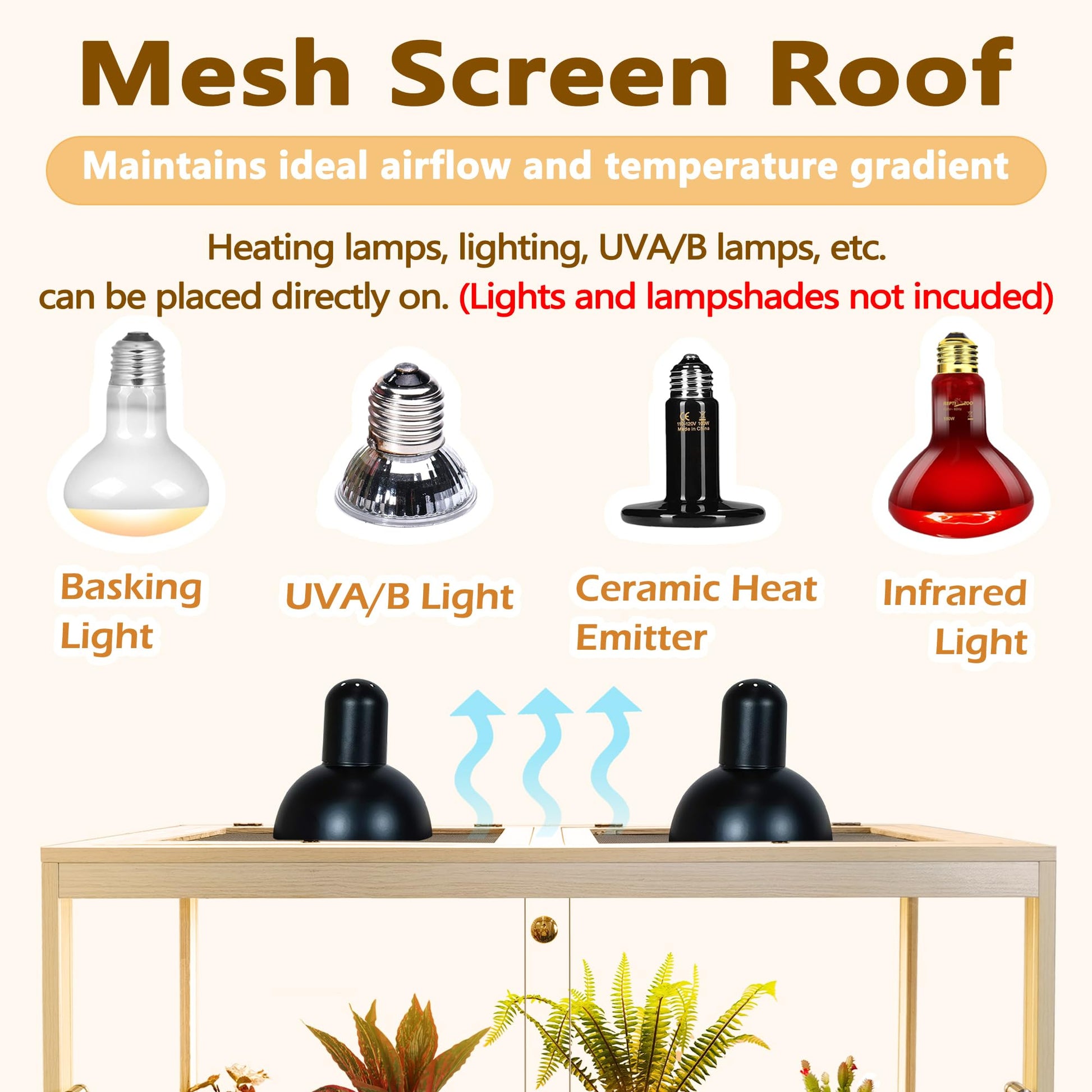 Metal Mesh Top: Provides excellent ventilation while keeping your pet safe. Bonus: perfect for heat lamps & UV lights. 🌞