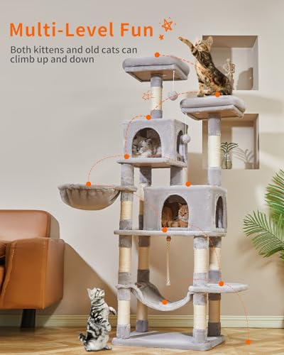 Give your feline friend the ultimate indoor retreat with our 66.2-Inch Cat Tree—a multi-level playground designed for comfort, fun, and enrichment. More than just furniture, this cat tree provides a space for climbing, scratching, and relaxation, making every moment with your pet special.